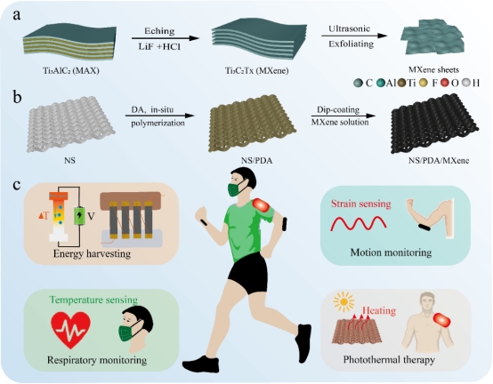 图1:MXene热电织物的制备工艺和应用