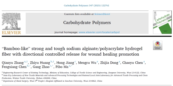 针织技术教育部工程研究中心蒋高明教授团队在材料领域一区TOP期刊《Carbohydrate Polymers》(IF=10.7)上发表题为““Bamboo-like” Strong and Tough Sodium Alginate/Polyacrylate Hydrogel Fiber with Directional Controlled Release for Wound Healing Promotion”的研究论文。海角社区