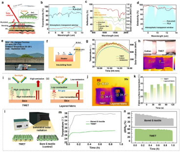 图5. 智能热湿管理电子纺织品的辐射制冷性能表征