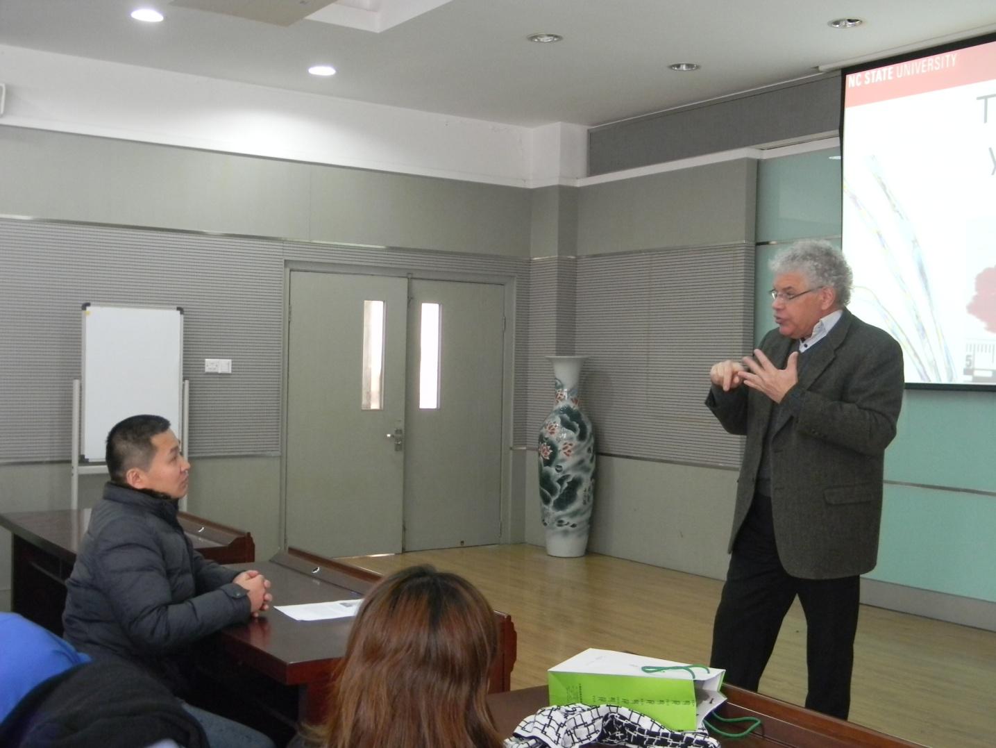 2014年12月31日, 纺织服装学院A103举行了分别由美国北卡州立大学Stephen Michielsen教授和澳大利亚维多利亚州警署的Yuet Chang博士主讲的《Bloodstain Pattern Analysis on Textiles》和《The examination of textile evidence in Forensic》学术讲座。参加此次讲座的有海角社区