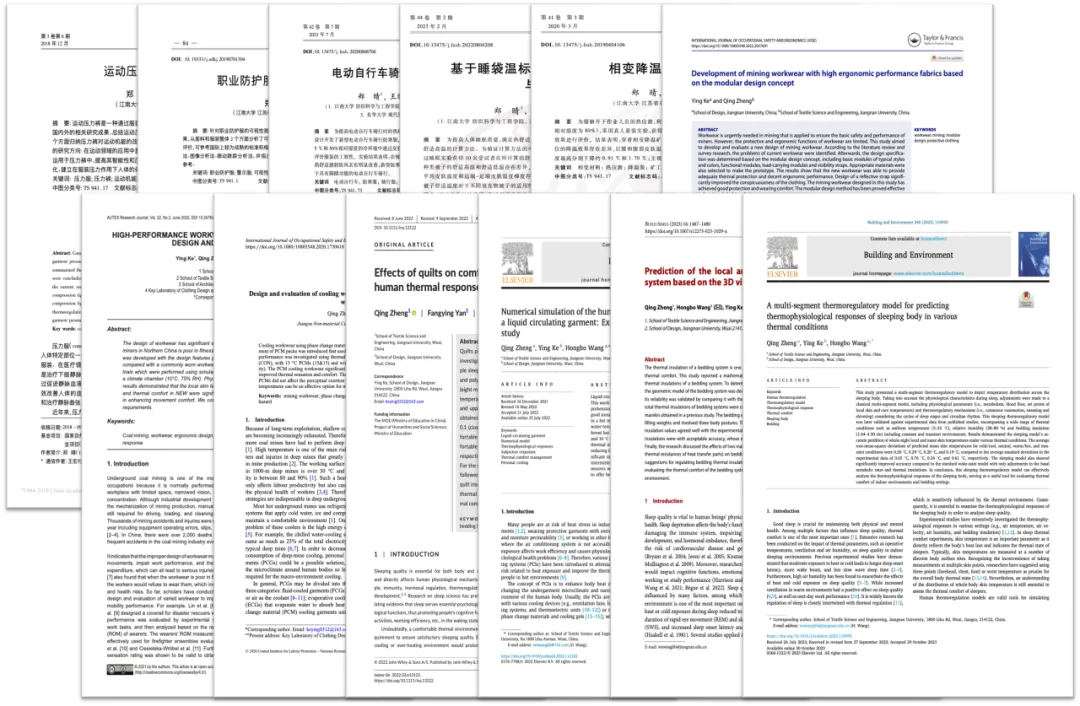 七年来,她以主要参与人完成多个纵向、横向科研项目,与罗莱生活科技股份有限公司、圣华盾防护科技有限公司、金利来集团有限公司等国内大型企业开展合作,撰写50000余字研究报告,以“产学研”融合助力行业发展。成果发表于《Building and Environment》《Building Simulation》《Energy and Building》等相关领域权威期刊。曾获中国纺织学术年会纺织研究生论坛优秀口头报告奖、中国纺织工程学会服装服饰专业委员会学术会议优秀论文奖、中国纺织类高校大学生创意创新创业大赛三等奖、中国纺织工程联合会军服文化创意设计大赛创意潜力奖等。