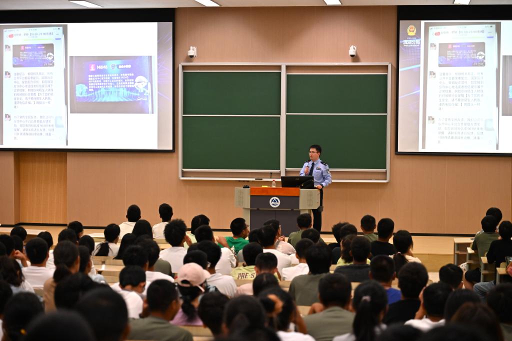 在2A127开展防范电信网络诈骗专题讲座,2023级本硕博全体新生参加活动。专题讲座由辅导员伍胤鸿主持。