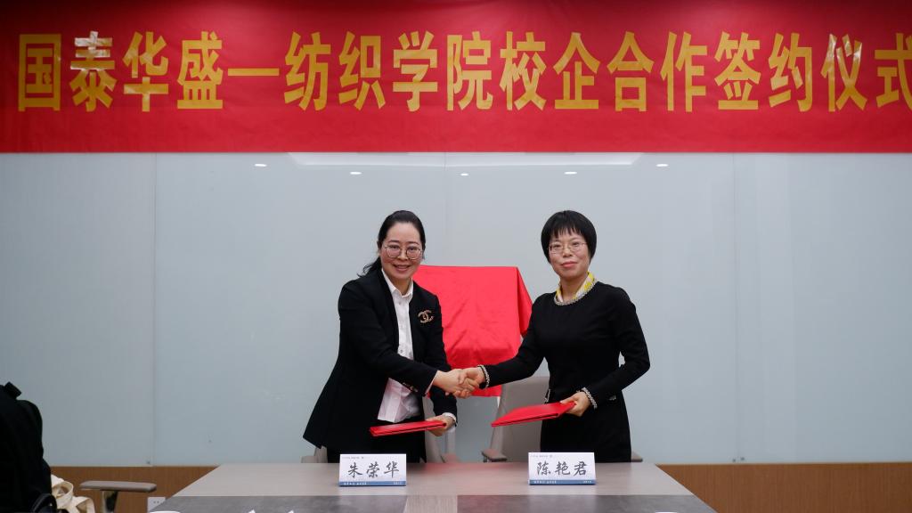 1223日上午,江苏国泰华盛实业有限公司-海角社区 校企合作签约仪式在纺院A304会议室举行。江苏国泰国际集团股份有限公司副总裁、江苏国泰华盛实业有限公司总经理朱荣华,江苏国泰华盛实业有限公司副总经理王飞、人力资源部主任顾华锋、招聘专员胡恺雯、招聘助理杨杰、盛天事业部人事专员张晶钰,海角社区 党委书记张菁,党委副书记兼副院长陈艳君,副院长黄锋林,分团委书记、学工办主任陈裕,本科毕业年级辅导员吴丹等出席签约仪式。