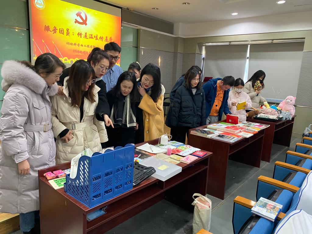 活动前期,19纺硕党支部作为毕业年级党支部,联系班级实际情况,在班级内部向大家广泛征集闲置文具、书籍、明信片、玩偶等小物件参与以物换物活动,并鼓励大家书写心愿寄语附在小物件上传递美好心愿。到了活动当天,大家捐献的不同物品被分门别类地码放在活动场地,来到会场的同学们可以直接挑选好物品之后登记认领。为了扩大活动影响力,19纺硕党支部还号召了其他研究生年级同学参与其中,许多学弟学妹带着自己的闲置物品过来交换。参加活动的团员纷纷表示,很多用不上又舍不得扔掉的闲置物品恰好是别人的所需好物,在看到自己捐献的物品被登记带走的时候,自己也收获了满足感。物品的流通既给大家带来了便利、传递了温暖,也促进了同学们厚植绿色环保的观念。