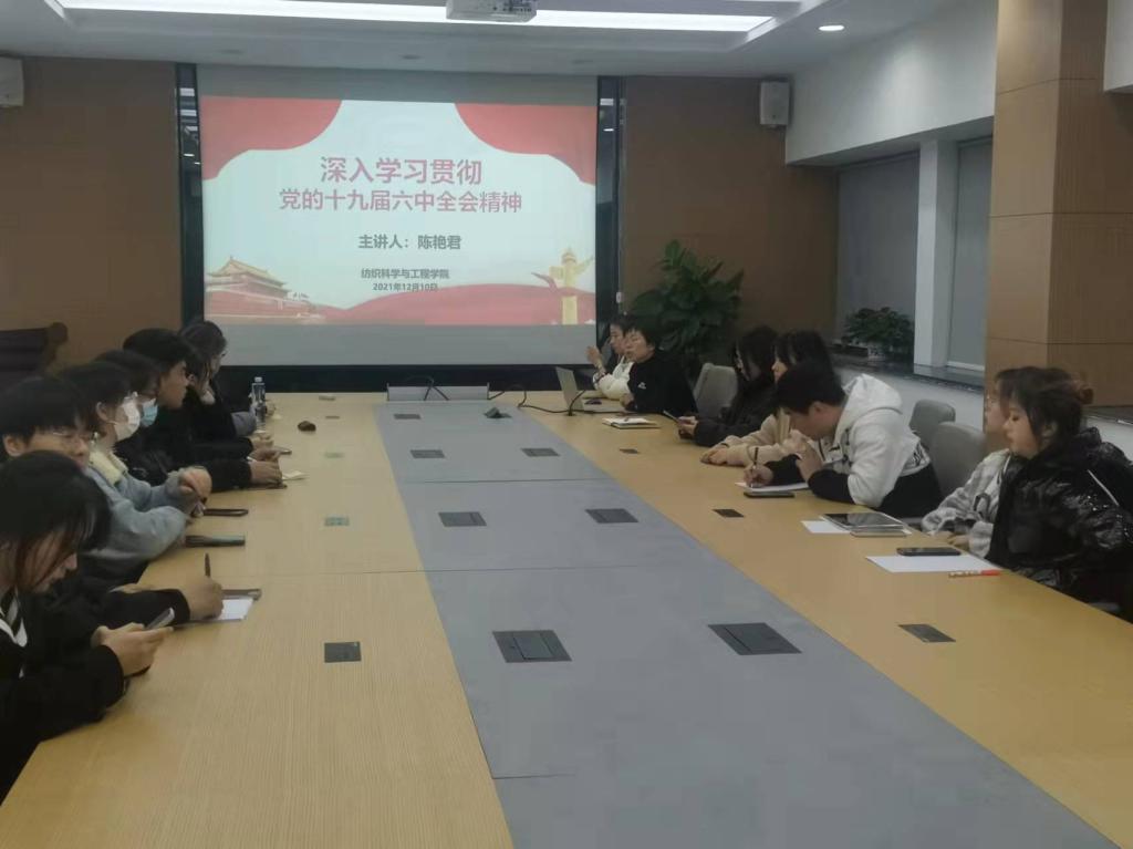 为深入开展党的十九届六中全会精神学习活动,及时给基层党支部传达会议精神。20211210日,海角社区 党委副书记、副院长陈艳君老师在学院A306会议室为本科生党支部党员上了一堂生动活泼的党课。此次党课主要面向纺织本科生党支部和轻化本科生党支部成员及第42期党的发展对象。