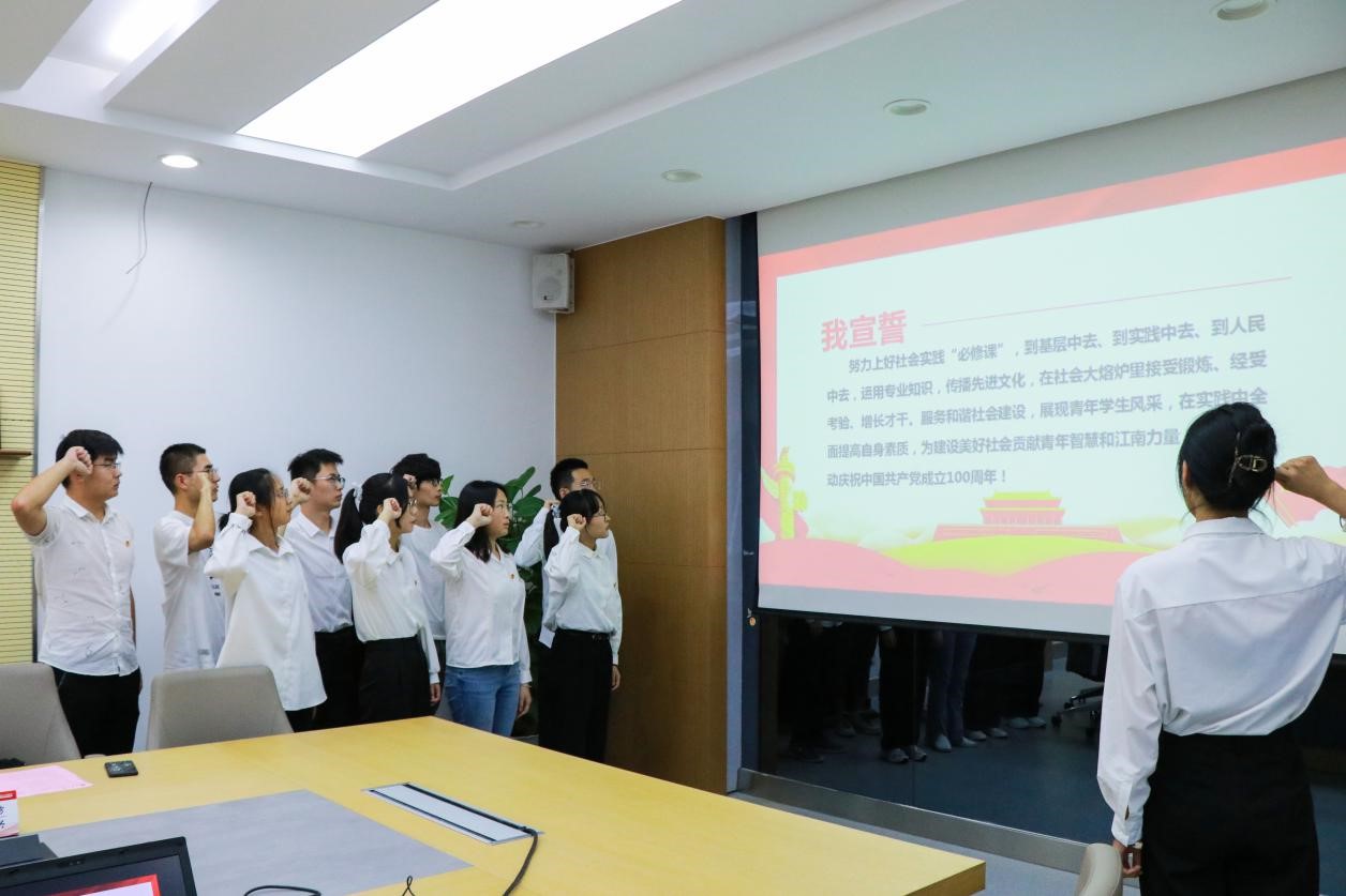 仪式最后,院学生会执行主席吕鑫带领社会实践重点团队代表进行出征宣誓。2021年暑期社会实践的号角已经吹响,踌躇满志的江南纺织青年即将投入到火热的社会实践活动中去。相信海角社区