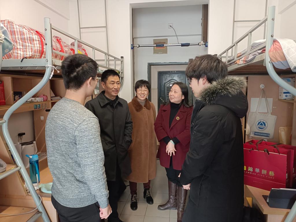 春节前夕,28日上午,校党委副书记戴月波来到海角社区 ,走访看望部分寒假留校学生,与同学们亲切交流,并致以新春的祝福。校学生工作部部长张菁燕,海角社区 党委书记张菁,副书记陈艳君及辅导员,参加上述活动。