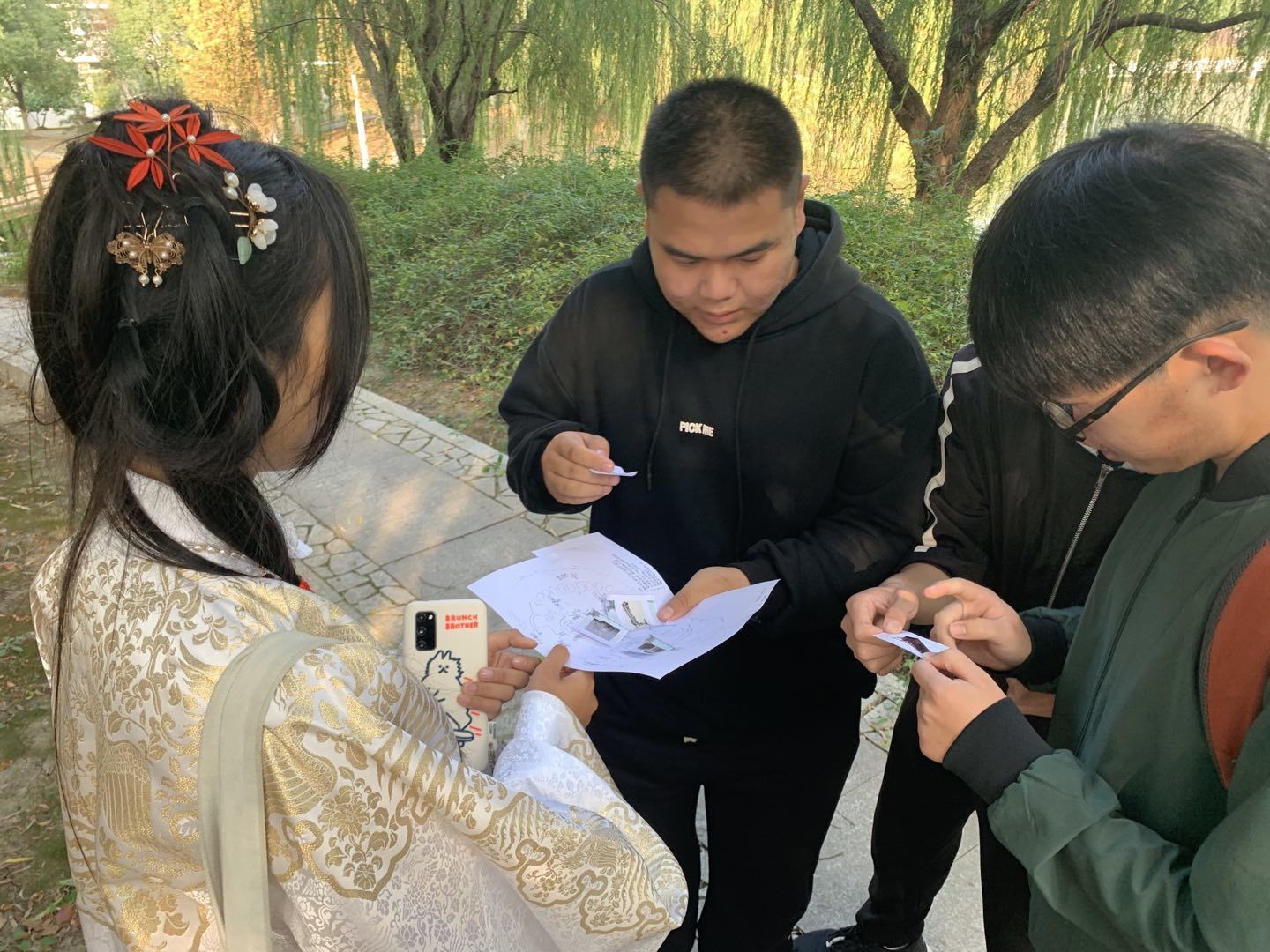 决赛共设置四个比赛项目,其中拼字环节是将汉字拆分后,由选手现场组合后答出正确汉字。类似此类比赛项目主要是考察选手对汉字以及汉文化的熟悉程度,同时也让在场的其他同学学习到丰富的汉文化知识。经过决赛激烈的比拼,最终由白衣卿相队、九万里队共同拔得头筹。