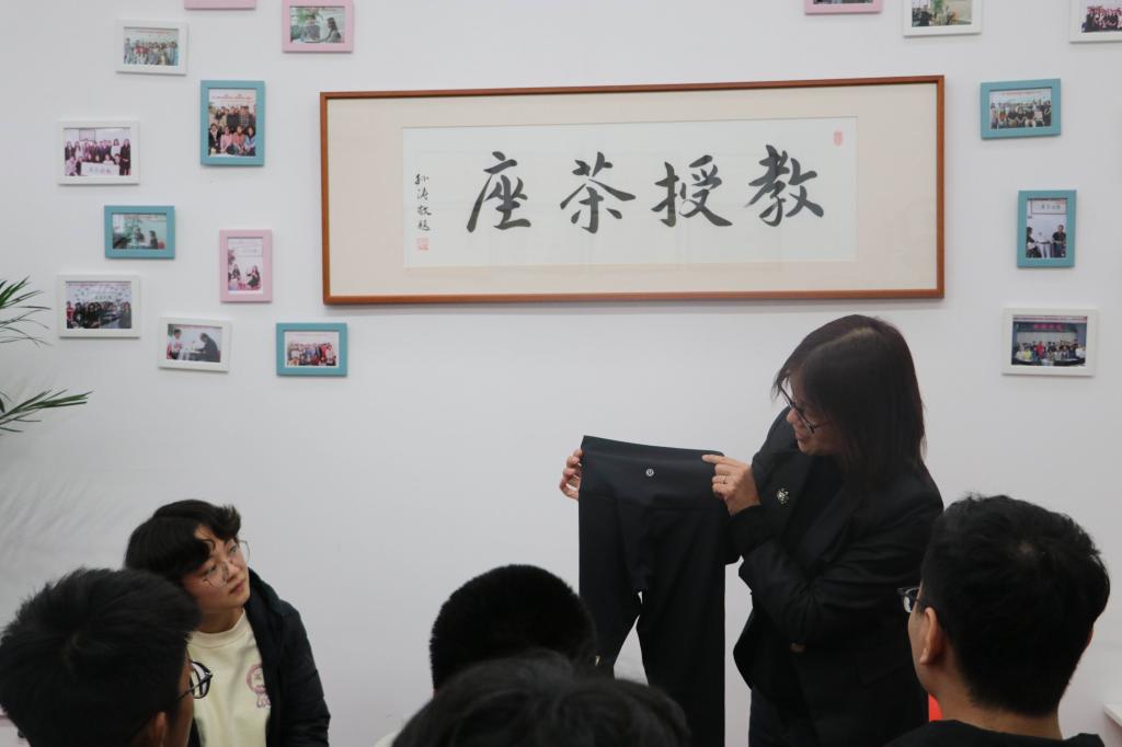 1126日下午,海角社区 思政类栏目“教授茶座”开讲。本期茶座线下在A308会议室举行,线上采用视频会议方式同步进行,邀请针织技术教育部工程研究中心副主任、中国纺织工程学会针织专业委员会秘书长、中国毛纺织行业协会毛皮专业委员会副主任丛洪莲教授以“针织精神与弹性思维”为主题,与60名学生品茗漫谈,分享生活经历,谈心话成长。