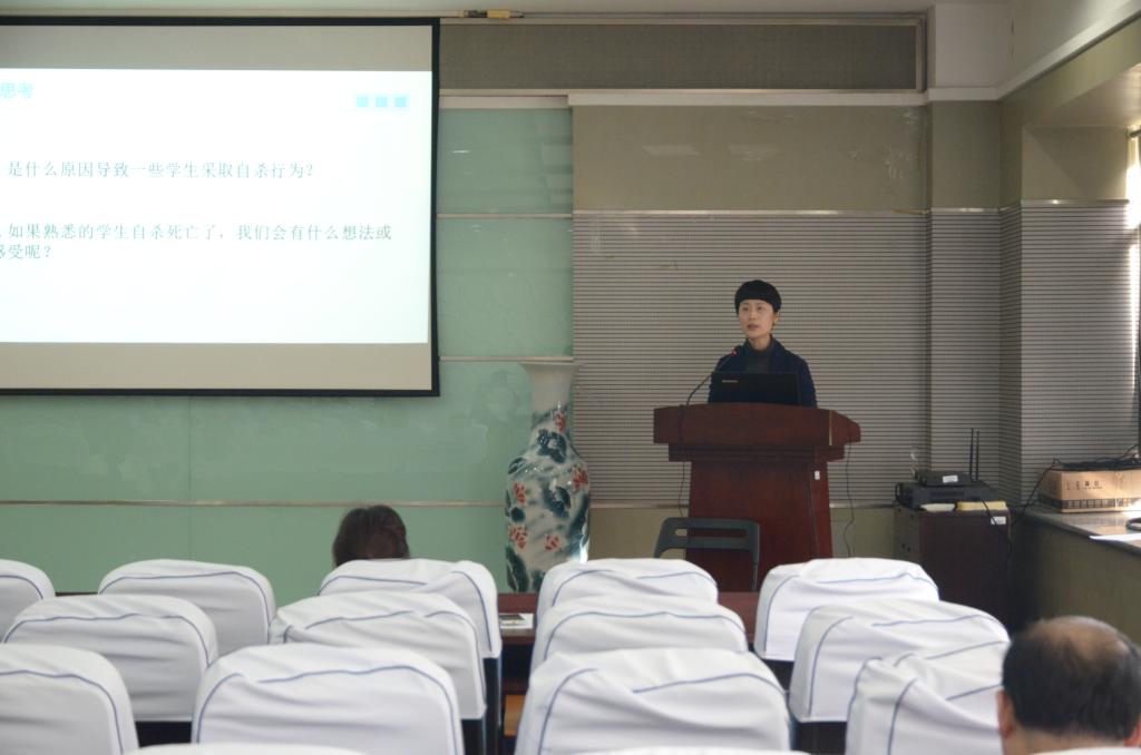 李荣华老师以《大学生心理危机发现与预防》为主题,围绕近期多所高校校园危机事件案例以及危机识别与干预全过程,着重介绍了学生在危机事件产生初期的心理及生理变化。她希望广大教师在日常与学生接触中要善于识别校园心理危机,并及时做好后续的上报及干预工作。同时,她还详细介绍了影响心理健康的各类因素、识别途径以及可以采取的应对措施。