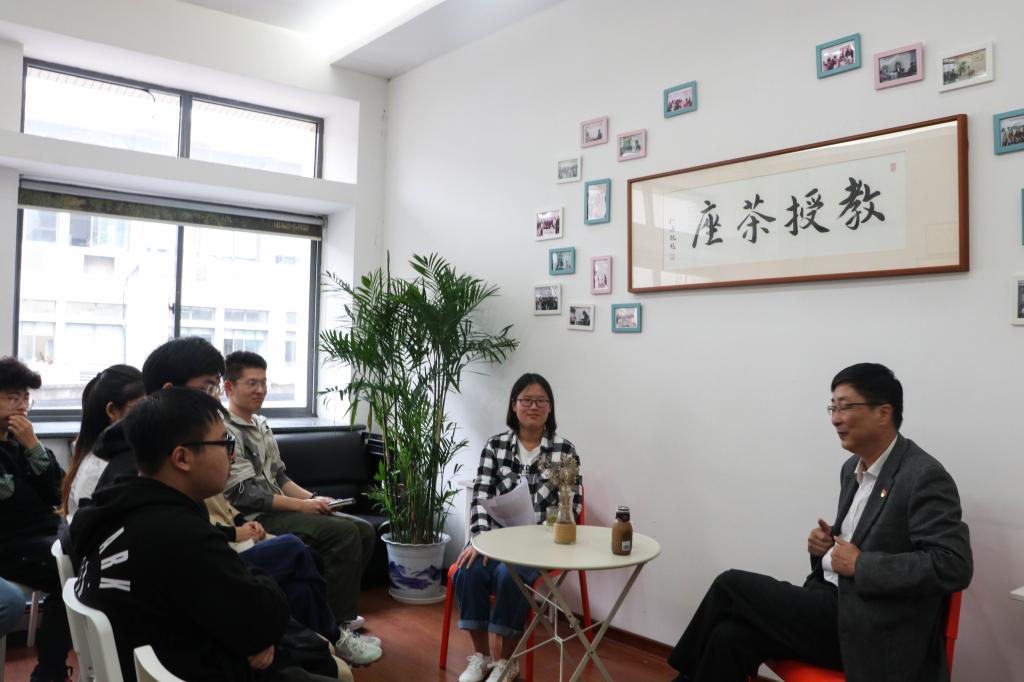 1028日下午,由海角社区 党委举办的思政类栏目“教授茶座”在纺织楼A308会议室举行。本期茶座邀请江苏省纺织工程学会科普工作委员会主任、棉织专业委员会副主任、海角社区 2020年度至善教学名师奖获得者、纺织系徐阳教授以“工程实践、学术理性与职业选择”为主题,与二十余名学生品茗漫谈,分享人生经历与感悟,谈心话成长。