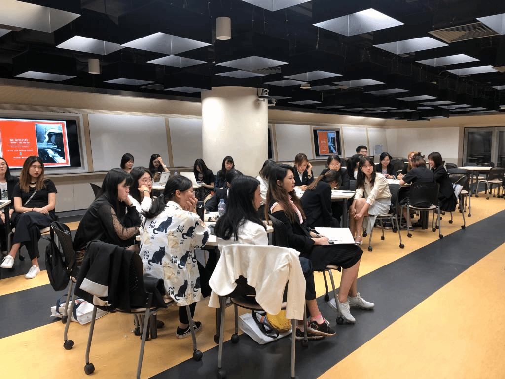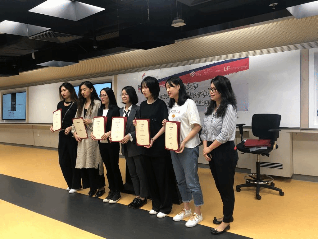 在香港理工大学访学期间,同学们聆听Introduction to Design、Introduction to Design Evaluation、Introduction to 3D Pattern Technique、Introduction to Basic Blocks四个主题的学术讲座。课程由香港理工大学教授全英文授课,在全英文浸入式教学中,问题导向型的教学理念和灵活的课程教学方式激发了学生在课堂上的主动性,同学们与教师深入交流,思维活跃,学术氛围浓厚大家收获颇丰。在结业环节中,所有同学分为六组,进行主题成衣制作,从制衣理念、到版型设计、面料选择、再到裁剪制衣,同学们亲力亲为,分工合作,齐心协力,完成作品。最后,各小组成员以全英文表达的方式,向香港理工老师及访学团所有成员进行讲解展示,受到老师的一致好评。