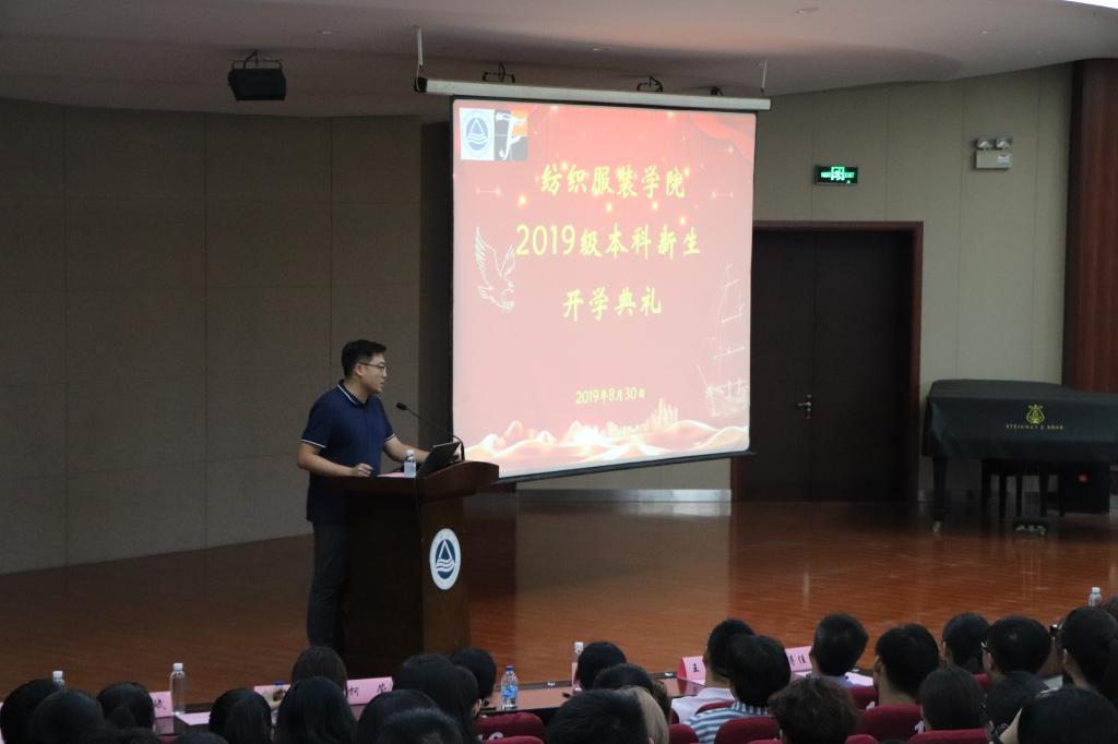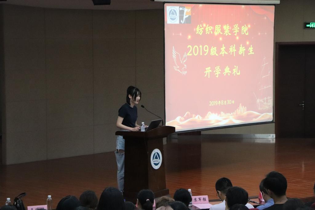 同时,院党委副书记周云龙宣读了2019新生班主任、副班主任聘任,蔡以兵教授、乔辉教授、马丕波教授等专业老师任新生班主任,高年级优秀学生任副班主任。各系主任分别代表各系专业教师寄语新生,与同学们谈人生、树理想、指方向。纺织服装学院现任学生会主席、服艺1702班杨文怡代表在校生为2019本科新生送上祝福,新生代表纺织1905班张嘉雯同学代表新生发言。