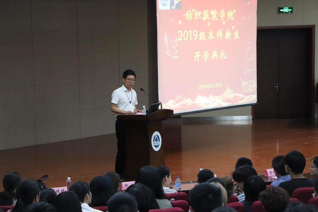 8月30日14时,纺织服装学院2019级本科新生开学典礼在北区大学生活动中心成功举办,院党委书记张菁、院长付少海、院党委副书记周云龙、副院长黄锋林、潘春宇以及各系主任、新生辅导员、全体新生班主任出席,典礼由院学工班主任王统斌主持。