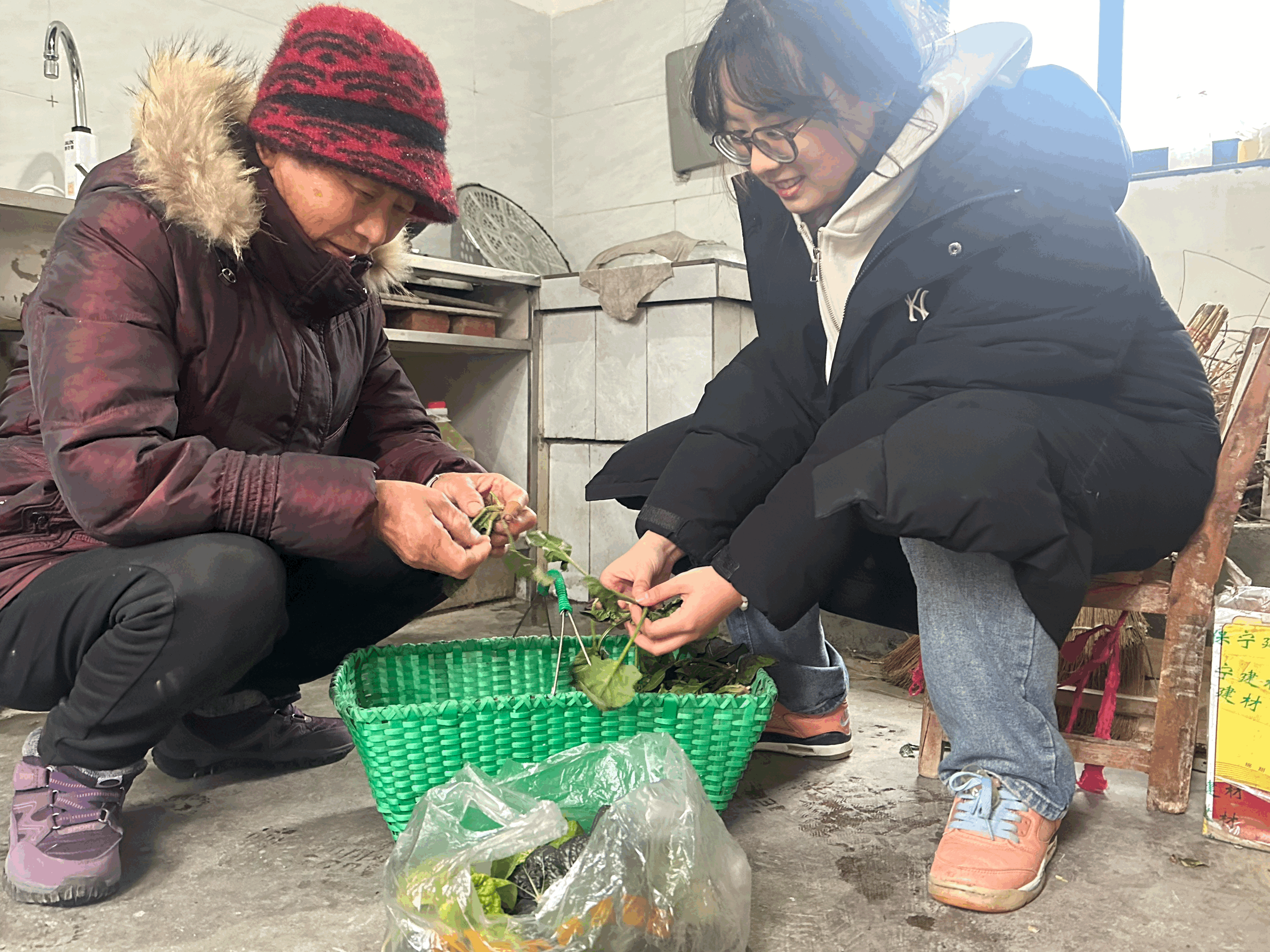 实践成员邵婧然前往湖北省襄阳市襄州区,进入老人家中,倾听陪伴老人,体会助农本真。她和老人们一起翻看老照片,在寒潮来袭时和老人们抢收地里的白菜,用实际行动传递温暖关怀,践行乡村振兴理念,为乡村发展注入青春活力。
