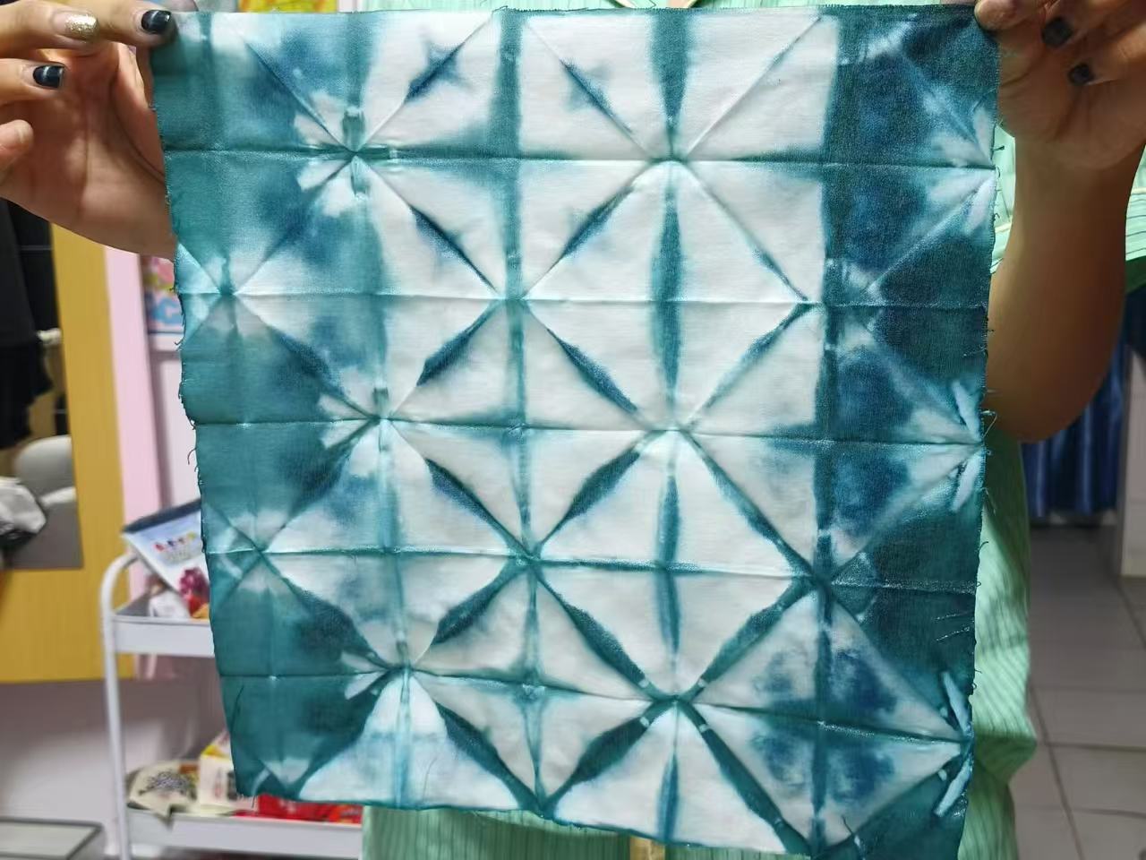 纺织学子制作扎染作品