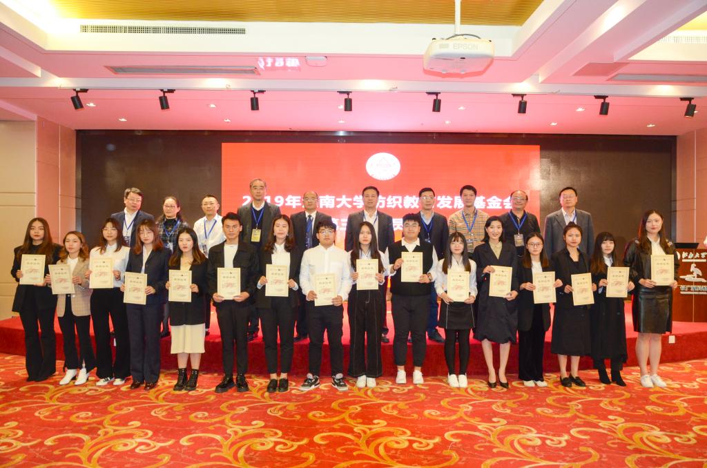 大会对2019年新增的14名新会员颁发了会员证,对2019年度杰出会员颁发了纪念奖杯。会上对2018年-2019年度在学院教育事业发展中,表现突出的教师、学生进行表彰和奖励。根据《海角社区 纺织教育发展基金会奖学奖教实施条例》,2019年度共评选出奖学金获得者134人次,奖教金获得者6位,在提高奖学总额的同时扩大学生受奖面,充分发挥基金会对的育人工作的大力支持。大会还进行了基金会理事会的换届改选,以及章程、奖学奖教实施条例修订的审议与表决。大会选举产生了第三届理事会理事、副秘书长、秘书长、常务理事、副理事长、理事长等。副理事长苏州安派精密电子有限公司董事长邵太春先生代表新一届理事会致辞,充分肯定了基金会弘扬与传承纺服“诚实、踏实、务实”的精神与彰显纺服“团结、奋进、自强”文化的特色与理念,并表示,将不忘初衷,继续做好基金会的各项工作。