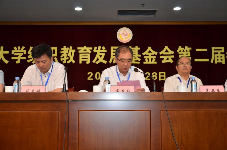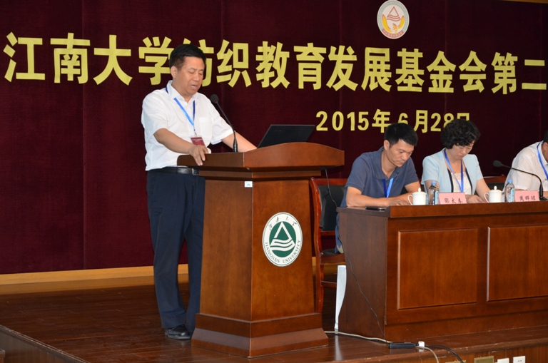 高卫东副校长作为纺织教育基金会的理事长向大会作了基金会工作报告。他首先从基金会的规模发展、搭建广泛交流平台、弘扬纺服精神、树立爱校美德等方面进行宣传;其次,高度赞扬了基金会成员立德树人、爱校捐资的高尚情操,并表示衷心感谢。最后,希望广大会员继续出谋划策,通过各种途径扩大基金会影响力,广泛联系校友,发扬纺服精神,传承爱校美德,努力实现基金会的可持续发展。