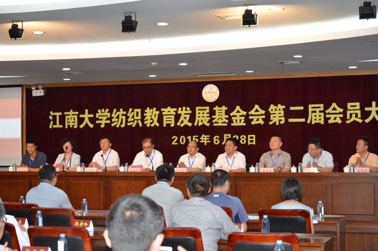 纺织教育发展基金会第二届会员大会在学校图书馆五楼会议室隆重召开,会议由基金会副理事长香港肇丰投资有限公司董事长高春和主持。副校长高卫东理事长、校党委副书记符惠明副理事长、江苏汇鸿股份有限公司董事长蒋金华副理事长、无锡市第一棉纺织厂厂长周晔珺副理事长、无锡市翔泰毛纺有限公司董事长周文涛副理事长以及一百多名会员及获奖师生出席了本届大会。