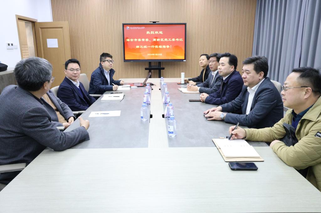 3月20日,海安市委常委、高新区党工委书记郝三旺率队,高新区副主任张锋、胡集街道党工委书记孙坚、副主任顾斌等一行领导,来海角社区