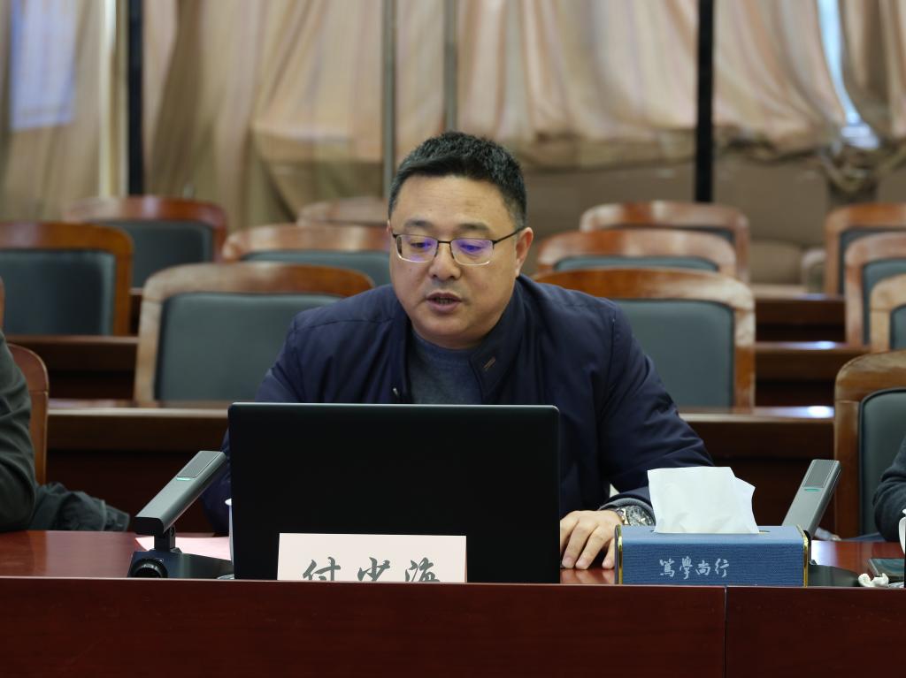 院长付少海介绍学院情况。他从学科现状、人才培养、科学研究、社会服务、国际交流5方面介绍学院近期的建设成果。