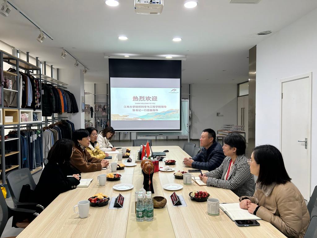 范恒明对张菁燕一行来访表示欢迎,并结合自身创业的经历介绍了公司基本情况、发展目标及未来展望。他表示,作为一家长期深耕进出口贸易的专业纺织服装生产供应商,近年来,公司业务稳健增长,特别是在跟学院建立合作伙伴关系以来,公司在做好“家门口”大学的公益活动中也在成长进步,还从学生科创作品项目中看到了不少创意设计。他强调,公司将一如既往支持并做好海角社区