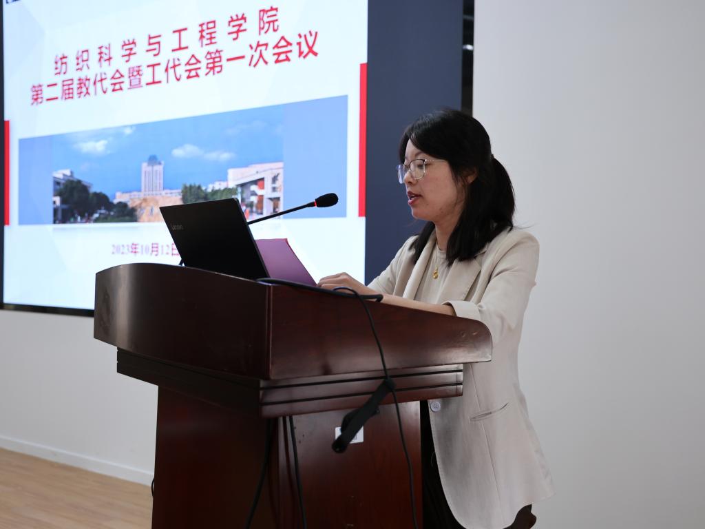 会上,院长付少海作《2020-2022任期行政工作报告》,全面回顾了过去三年学院工作,围绕打造一流纺织教育科技人才高地、构建特色学科发展新格局、创新师资队伍建设机制、持续提升国际影响力等方面提出未来五年的发展设想。分工会主席卢雨正作分工会三年工作总结,并就进一步围绕中心、服务大局,提出分工会未来重点工作方向。