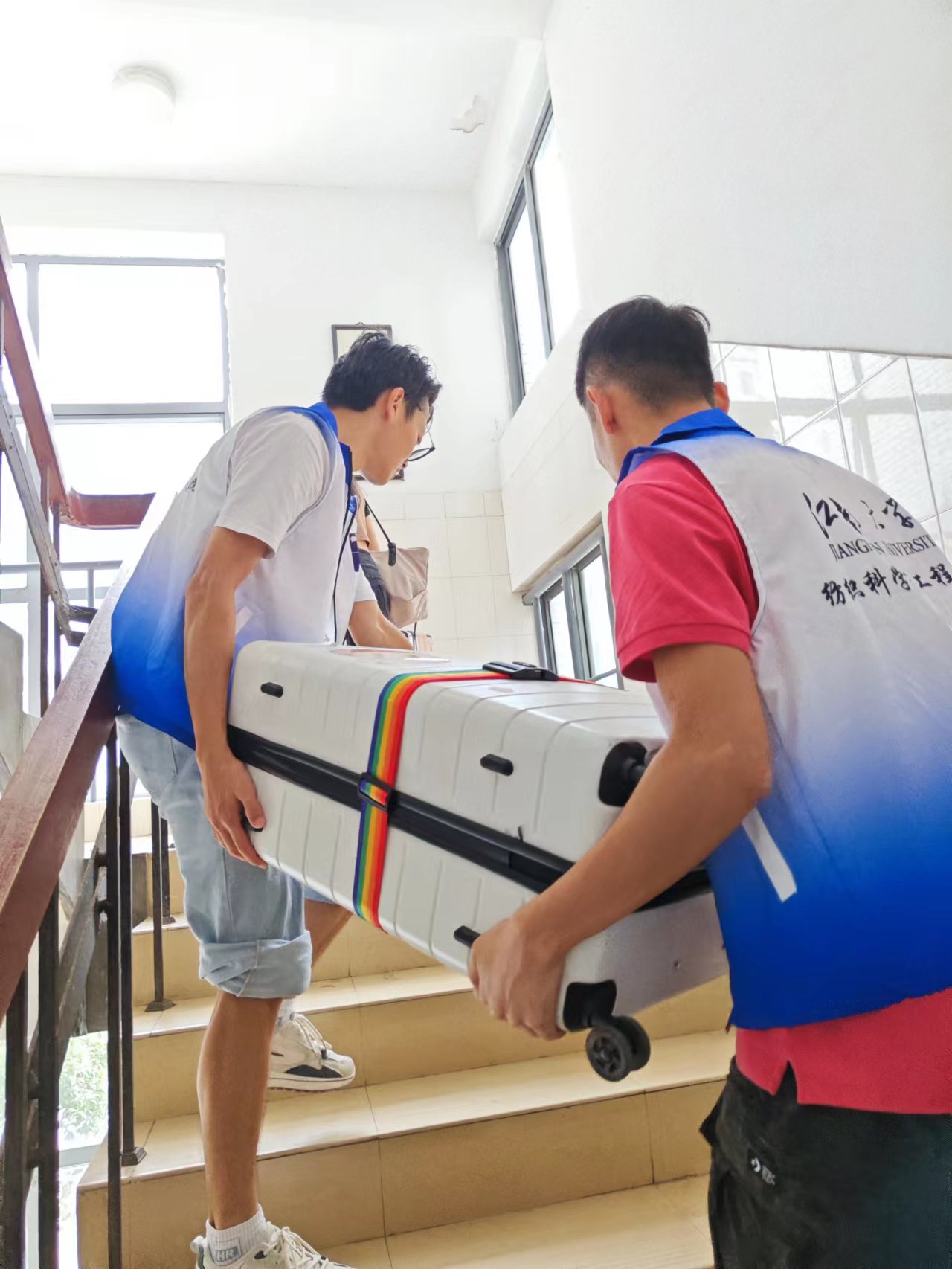为了给新生提供贴心的来“纺”初体验,学院学生会、研究生会、党员先锋队组建了志愿者服务队,为萌新一路护航。安心,或许是雨天复杂路口迷茫时得到清晰而明确的引导;感动,或许是独自扛着大包小包时看见伸来的一双双援手;惊喜,或许是到报到时发现“恭候多时”的新生大礼包;温暖,或许是学长学姐热情的笑脸和真诚的问候。