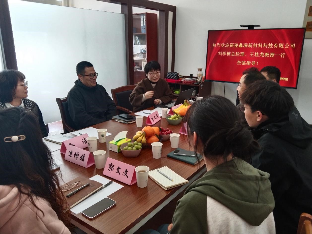 产业用纺织品研究室进行产学研合作接洽。福建鑫瑞新材料科技有限公司总经理刘学栋、山东大学王桂龙教授,海角社区