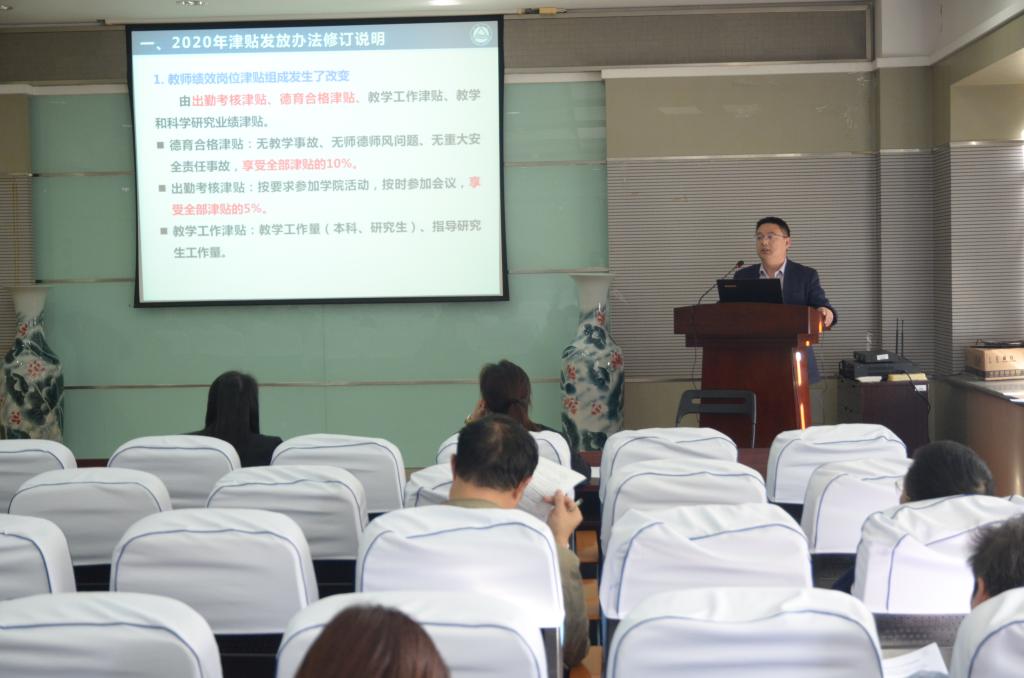 2020年度津贴分配方案》(教代会审议稿)作了解读,重点介绍了修订的政策依据、形成过程、适用范围以及2020年度绩效岗位津贴组成变化、教学工作量补贴变化、科研岗考核方案变化等涉及教职工切实利益的其他重要问题,对教职工意见比较集中的问题进行了解释和说明。经过与会代表们的审议与讨论,一致表决通过了分配方案。