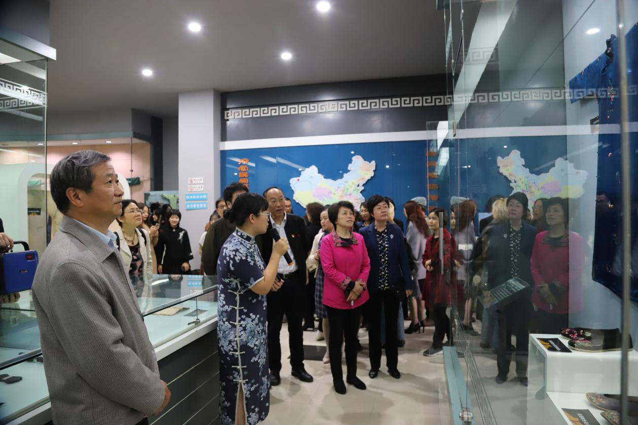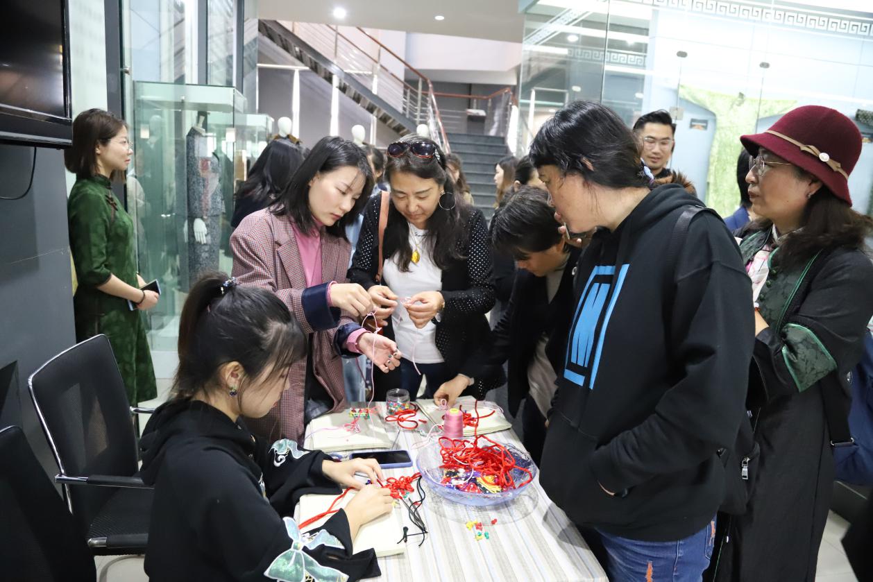 学科建设、人才培养中的奉献精神和做出的成绩表示感谢与肯定。洪雅副主委代表盟市委向此次文化展演活动致辞,并对为民盟事业发展做出努力的盟员表示感谢,并对旗袍的发展及流行进行了简单而全面的介绍,对中华传统文化传承与发展的美好前景寄予期望。开幕式后,与会领导及嘉宾参观了民间服饰传习馆的旗袍展陈,牛犁副教授结合文化讲座内容向大家一一介绍展品。展厅内还设有盘扣手工制作台,参观者纷纷尝试,亲身实践传统文化。