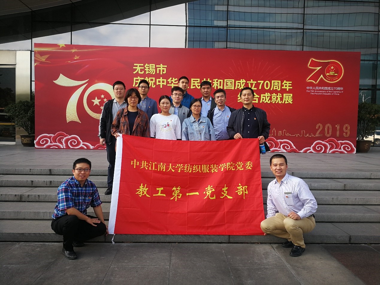纺织服装学院教工一支部与“发展规划与重大项目办公室、学术委员会办公室”联合党支部开展了 “践行初心之旅”主题党日活动,赴无锡博物院参观“无锡市庆祝新中国成立70周年综合成就展”。
