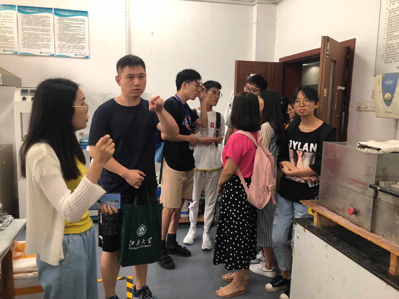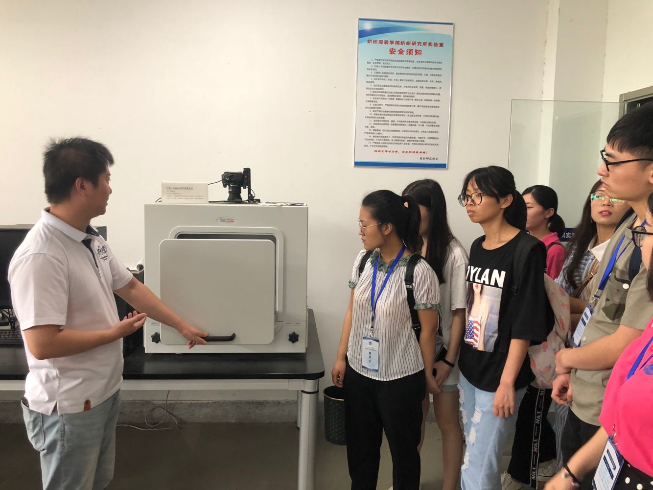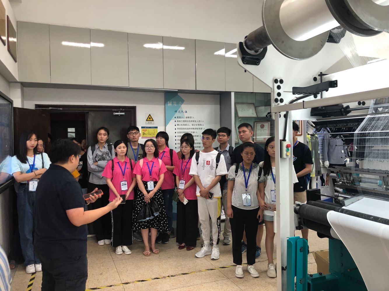 纺织服装学院副院长潘如如教授致欢迎辞,对来自四川大学、西南大学、东北师范大学、云南大学、海南大学、太原理工大学、天津工业大学等十几所高校的参营同学表示热烈的欢迎。同时潘老师对学院的学科情况、科研组织机构、科研工作、社会服务、研究生招生规模和人才培养质量等进行了介绍。随后学院研会志愿者带领参营同学参观学院省(部)级科研平台,包括针织技术教育部工程研究中心、生态纺织教育部重点实验室、江苏省功能纺织品工程技术研究中心和江苏省数字喷墨印花工程技术研究中心等,各科研平台负责老师对其科研情况、服务情况以及研究方向等做了详细介绍。下午,学院博士生导师魏取福教授给同学们作了有关功能纺织材料发展趋势方面的学术报告。