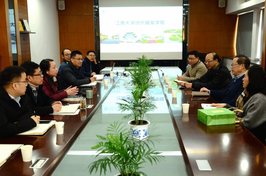 在调研座谈会上,付少海院长就学院的建设发展情况作了总体汇报。纺织服装学院自1952年创建,经过多年建设取得了长足的发展,近年来尤其在“卓工计划”“卓越计划”人才创新培养、“国家科技支撑计划、科技部重大专项”科技创新驱动、“生态纺织、针织中心教育部重点实验”平台交叉创新等方面的建设获得了新突破;学院围绕“搭平台、聚人才、接项目、出成果”的建设思路,面向国家战略、行业前沿的需要和发展,注重学科交叉与融合,形成了一批产生重大经济效益和具有显著社会影响的成果,逐步形成了集纺织工程、轻化工程、服装设计与工程于一体的产业链学科集群办学优势。付院长重点分析了学院当前面临的机遇危机和挑战,提出了下一阶段的工作思路、发展方向。他认为,纺织服装学院已进入到新的发展阶段,学院将重视并做好战略规划,凝练学科发展重点,着重在学科平台、本科教学内涵建设、高端顶尖人才汇聚、标志性重大成果、产学研示范基地建设、中青年人才培养等方面打开思路,找准关键要素,寻找新的增长点,向着一流目标迈进。