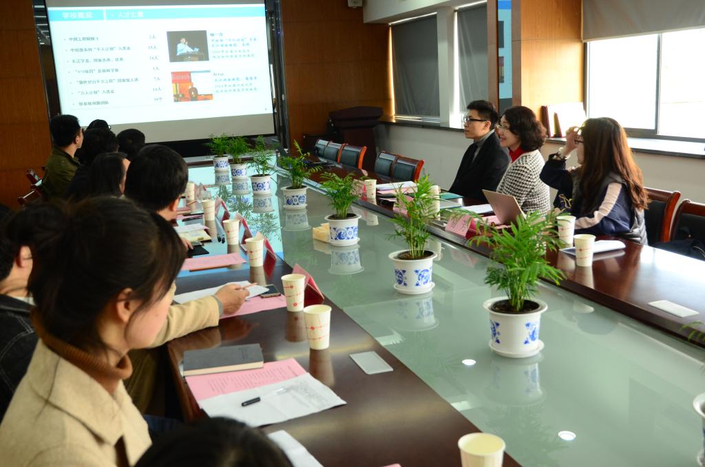 党委副书记周云龙向来宾介绍了学院思政教育品牌活动“教授茶座”,并表示学院将以人才培养为目标,凝心聚力,持续在思想引领上下功夫。