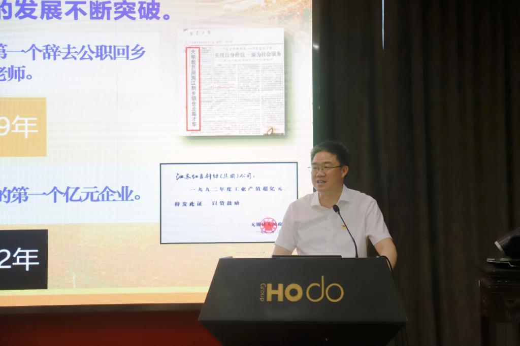 钱静介绍了红豆集团的基本概况,强调了校企合作对于集团事业高质量发展的重要意义,对学校毕业生在红豆集团的成长及取得的成绩给予肯定。邓川以《中国特色现代企业制度推动高质量发展》为题,介绍了集团首创“现代企业制度+党的建设+社会责任”三位一体的中国特色现代企业制度的有关情况。校友代表、红豆居家商品中心商品企划部部长刘少莉作了发言。