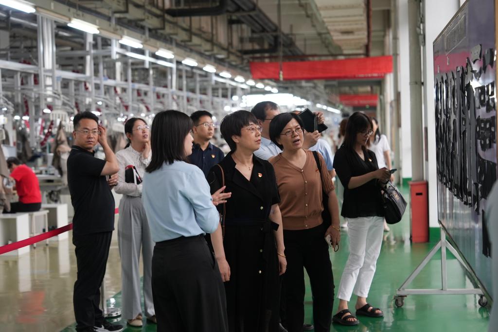 党委书记张菁燕率队赴红豆集团开展“学习习近平文化思想 探寻江南纺织精神”主题党日活动,学院党委委员,及针织所教师党支部、共建单位连云港杜钟新奥神氨纶有限公司党员代表等20余人参加了活动。红豆集团党委副书记、组织部部长、副总裁钱静,人力资源部部长浦卓雅,红豆大学执行校长邓川等出席座谈会。