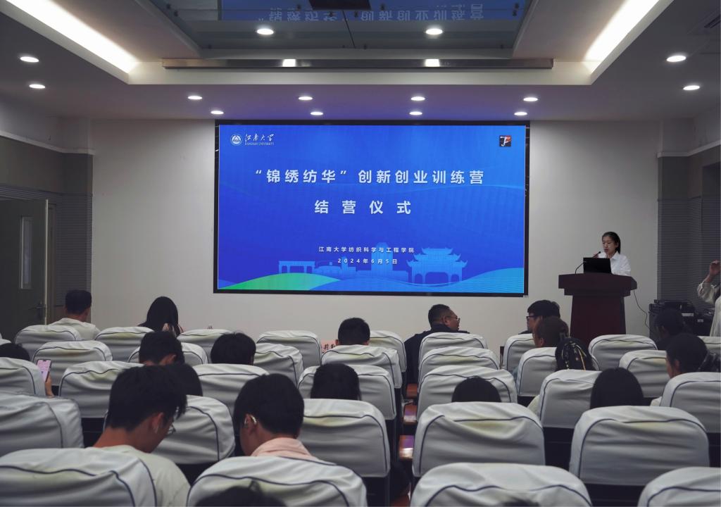 随后,训练营营员从现代化纺织材料、技术以及纺织行业的机遇与挑战等方面展开路演答辩,介绍了许多纺织邻域先进产品与技术,展示了江南纺织人的创新风采与积极的精神面貌,表达了未来在纺织行业有所作为的决心。最后,营员代表肖芯悦在发言中表示,训练营带给她的不仅是对纺织的深入了解,更是创新创业者为梦想的不懈努力,让她更加坚定自己前进的方向,勇敢的追寻梦想,努力承担起纺织强国建设的重任。