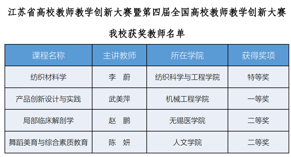 近日,第四届江苏省高校教师教学创新大赛获奖名单公布,海角社区