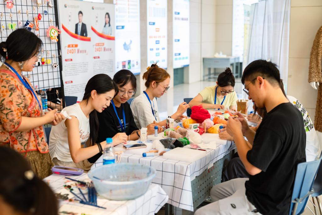 用梦想之线,编织锦绣,以手中之针,“戳”出未来。迎新当天,学院结合专业特色开设了“拉线画心愿汇”制作区,新生们通过一根根线制作出独特拉线画,将自己对大学生活的期许,书写其上、张贴集中,制成2024级纺织学子“心愿汇”。此外,还开展了有趣的“羊毛毡”手工活动,凭借一根灵巧的戳针和一块柔软的泡沫板,一针一针的塑造出心中所想。这些多元化,多样化活动的开展,拉进了新生们与陌生校园的距离,帮助萌新们快速融入到新环境中。