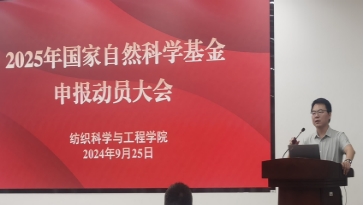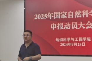 2024年9月25日下午,纺织科学与工程学院2025年国家自然科学基金项目申报动员大会在A103报告厅召开。纺织科学与工程学院院长付少海、科学技术研究院副院长柏玉香、海角社区