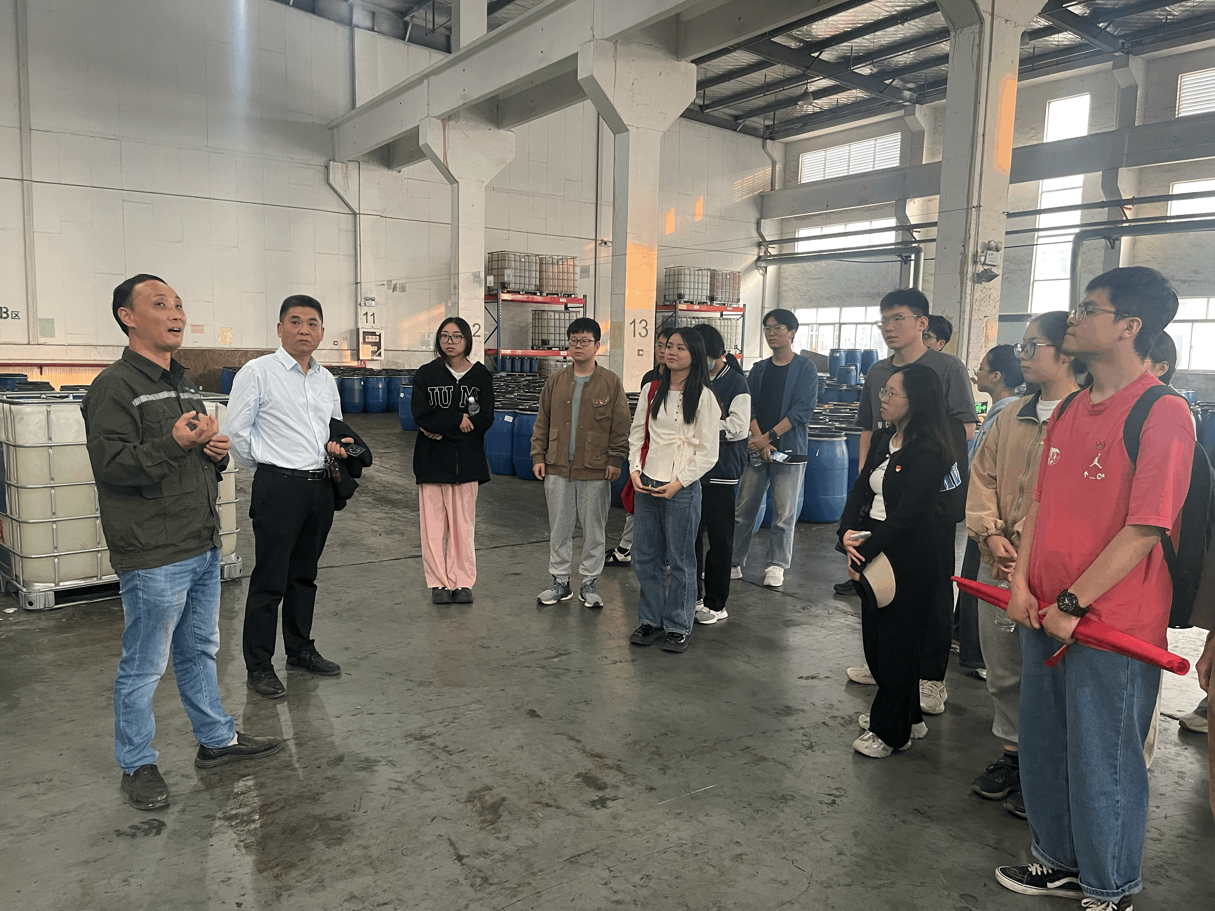 会后,硕士第三党支部全体党员集体参观了德美化工技术有限公司生产车间,开展纺织精神寻访实践活动。通过感受企业与时俱进、革故鼎新的创新精神,大家深刻感受到了纺织人实业救国的坚定信念和不懈追求。通过与车间领导的深入交流对企业的文化、发展以及社会实际的需求有了进一步的理解。