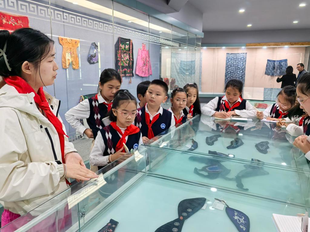 “民间服饰传习馆”。参观过程中学生们表现出浓厚兴趣,积极踊跃地提出问题并细致记录所见所学。