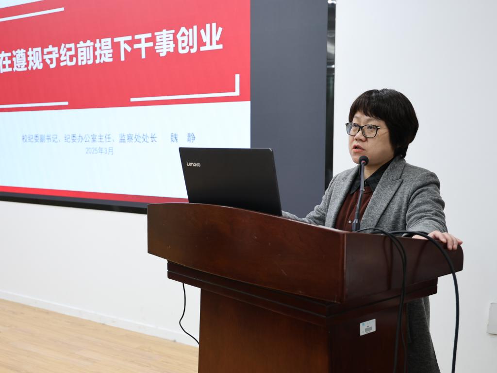校纪委副书记、纪委办公室主任、监察处处长魏静作专题报告