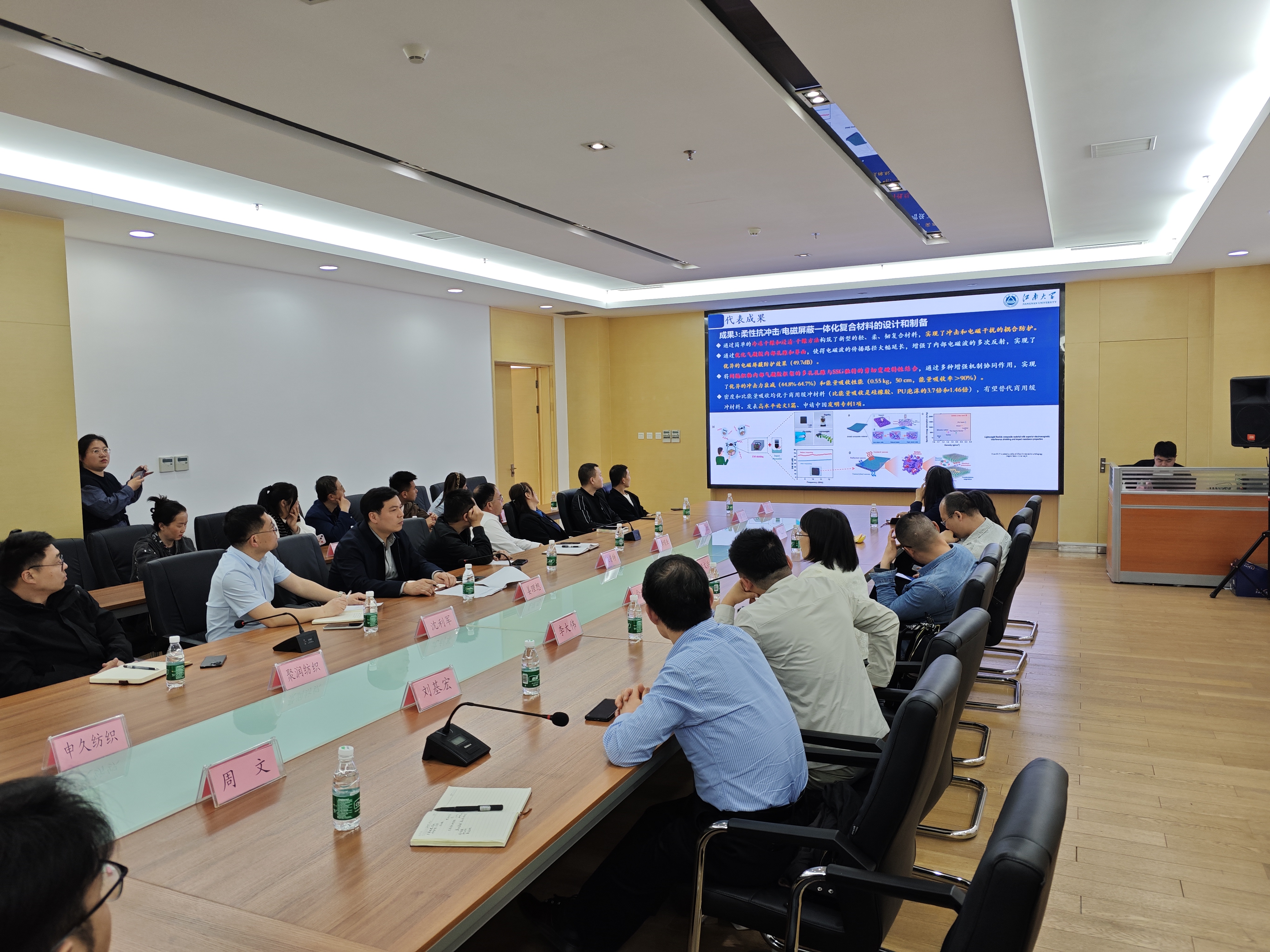 纺织学科的历史沿革、学科特色及建设成果,其团队专家依次分享了智能纺织材料、绿色染整技术、可穿戴电子纺织品等领域的前沿研究成果。值得关注的是,与会企业技术负责人结合产业实践指出,通过校企共建联合实验室、项目联合攻关等产学研协同创新模式,不仅能加速高校技术成果转化,更能显著提升企业核心技术竞争力,建议建立"定期互访+需求对接+项目孵化"的长效合作机制。会议最后达成共识,支部-企业双方将围绕人才培养、技术研发、成果转化三个维度深化合作。