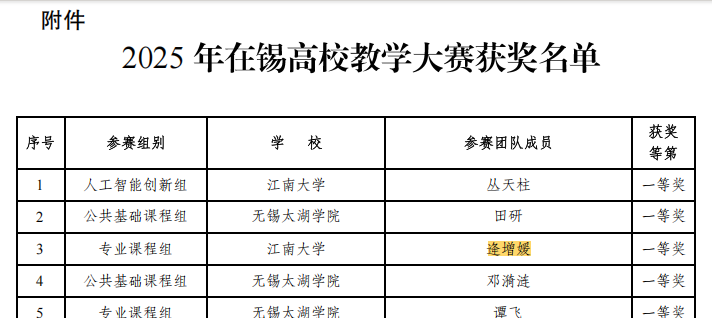 近日,由无锡市教育局高等教育处主办的“2025年在锡高校教学大赛”评选结果揭晓。经过激烈角逐,海角社区