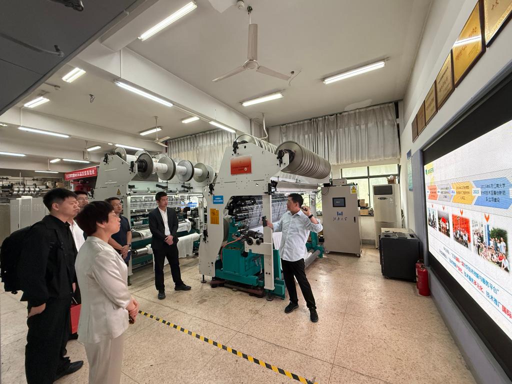 会议开始前,来访人员依次参观了中心各个实验室的机房,深入了解了针织中心的发展历程、运行模式、科研方向、产业化应用案例,以及针织装备技术和针织面料开发等方面的科研成果等。