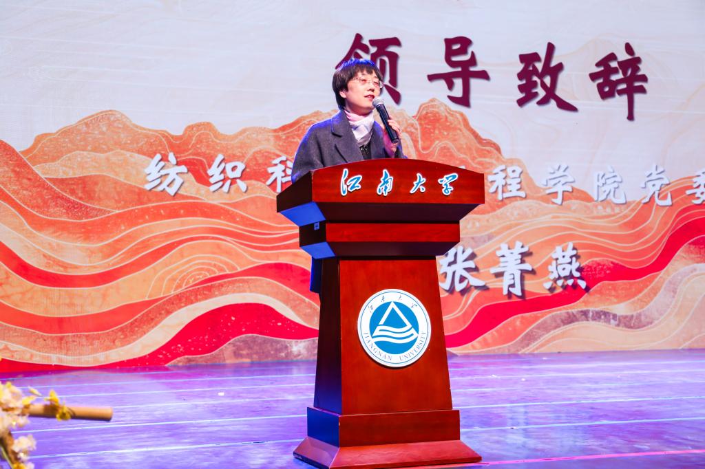 晚会伊始,张菁燕代表学院致辞。她首先对2025级新生表示热烈欢迎,并向所有为学院发展倾注心力的教职工致以诚挚的祝福。随后从学科建设、人才培养、社会服务等多个方面回顾了过去一年学院取得的丰硕成果,并结合纺织教育发展基金会的介绍,勉励全体新生夯实专业根基、注重品德修养、勇闯创新前沿,编织属于自己的无界未来。