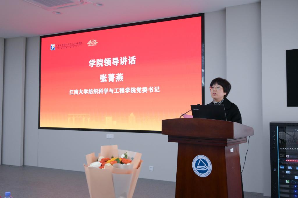 最后,张菁燕总结讲话,她代表学院向波司登的捐赠表示衷心感谢,同时也向在场的嘉宾及同学们介绍了学院及近年来学院取得的成绩。她希望同学们在未来的发展中常怀创新发展的进取之心、以责为帆的担当之心、饮水思源的感恩之心,勇于实践,敢于创新,为中国纺织行业发展贡献自己的青春智慧。