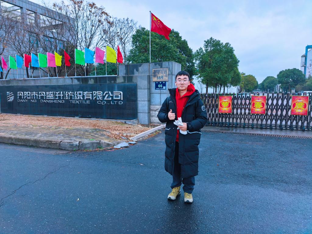 朴振同学来到江苏丹阳丹盛纺织厂,深入生产车间与研发中心,实地学习企业在高端织造、功能性面料研发、数字化生产、绿色纺织等领域的创新成果。他将革命先辈攻坚克难的奋斗精神与企业自主创新实践相结合,深刻认识到新时代纺织人必须以技术创新推动产业升级,坚定了以专业所学服务纺织高质量发展的信念。